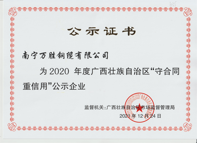 2020年度守合同重信用證書